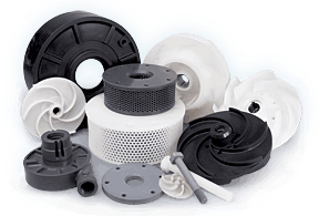 All fluid contact parts of a Vanton pump are injection molded or fabricated of solid, chemically inert, thermoplastics.